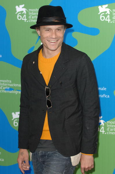 Актер Хит Леджер (Heath Ledger) на презентации фильма I`m not there на Венецианском кинофестивале, Италия, 4 сентября 2007 года. Поразительно, он еще может улыбаться! Поистине, у человека железная сила воли. Сейчас, когда полным ходом идет его бракоразводный процесс с актрисой Мишель Уильямс и неизвестно, как решится вопрос об опекунстве их единственной дочери, двухлетней Матильды, Хит находит в себе силы ездить по кинофестивалям, позировать фотографам и отфутболивать от себя вопросы любопытных и сочувствующих. Что ж, женитьба на серенькой мышке Мишель, его партнерше по фильму «Горбатая гора», многим показалась странной и поспешной. Кое-кто даже со смехом заявлял, что, похоже, Леджер испугался сплетен вокруг скандальной картины и таким образом официально подтвердил свою гетеросексуальную ориентацию. А вот сам Хит говорил, что впервые влюбился. До этого его жизнь была как у Казановы, которого он играл: множество женщин, в большинстве своем значительно старше его, открывали ему свои объятия. Среди них сестра Билли Зейна Лиза, Хизер Грэхем, Наоми Уоттс, с которой он встречался несколько лет и которой разбил сердце своей молниеносной женитьбой на Мишель. Зато теперь Наоми счастлива с актером Ливом Шрайбером и крошечным сыном, а Хит разводится. «В течение долгого времени их отношения оставляли желать лучшего. Они изо всех сил старались спасти свой союз, однако у них ничего не получилось, – вздыхают общие друзья пары. – Но они пытаются сохранить нормальные отношения ради своей дочери».